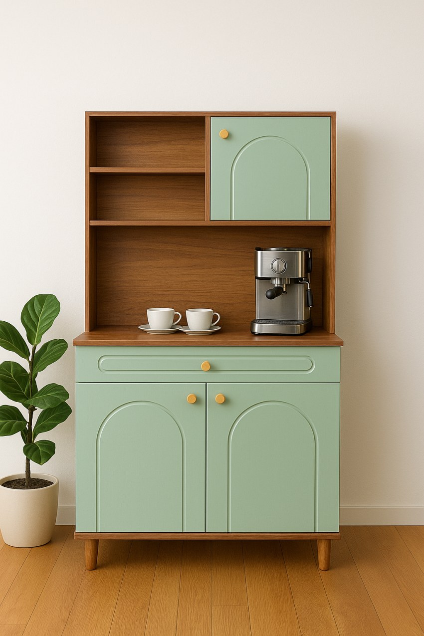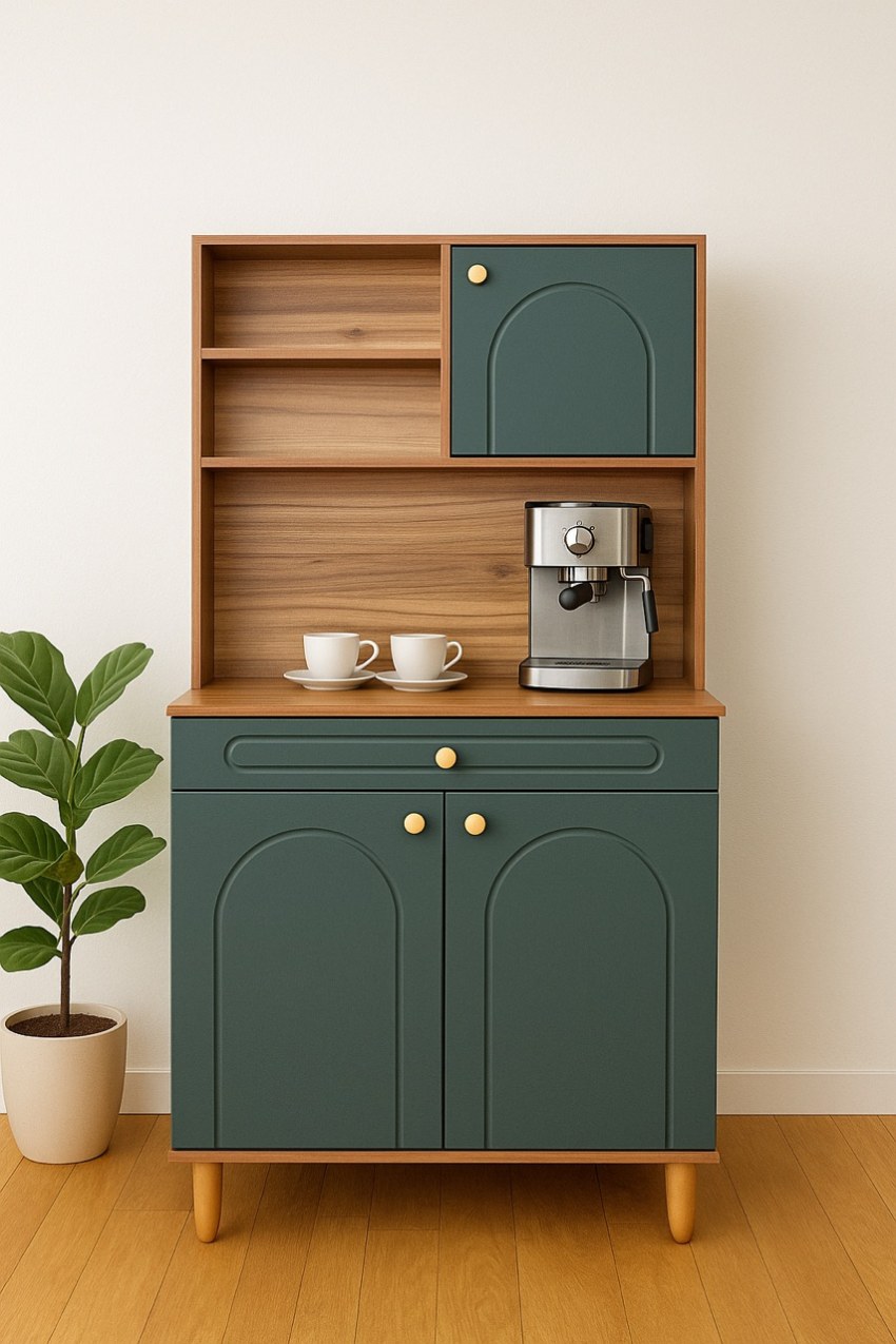 ابعاد : عرض ۹۰ سانت ارتفاع ۱۷۵ عمق ۳۵ ارتفاع فضای اسپرسوساز ۴۰ سانت پایه ها از جنس چوب بدنه ملامینه و درب ها ام دی اف وکیوم ارسال به سراسر کشور