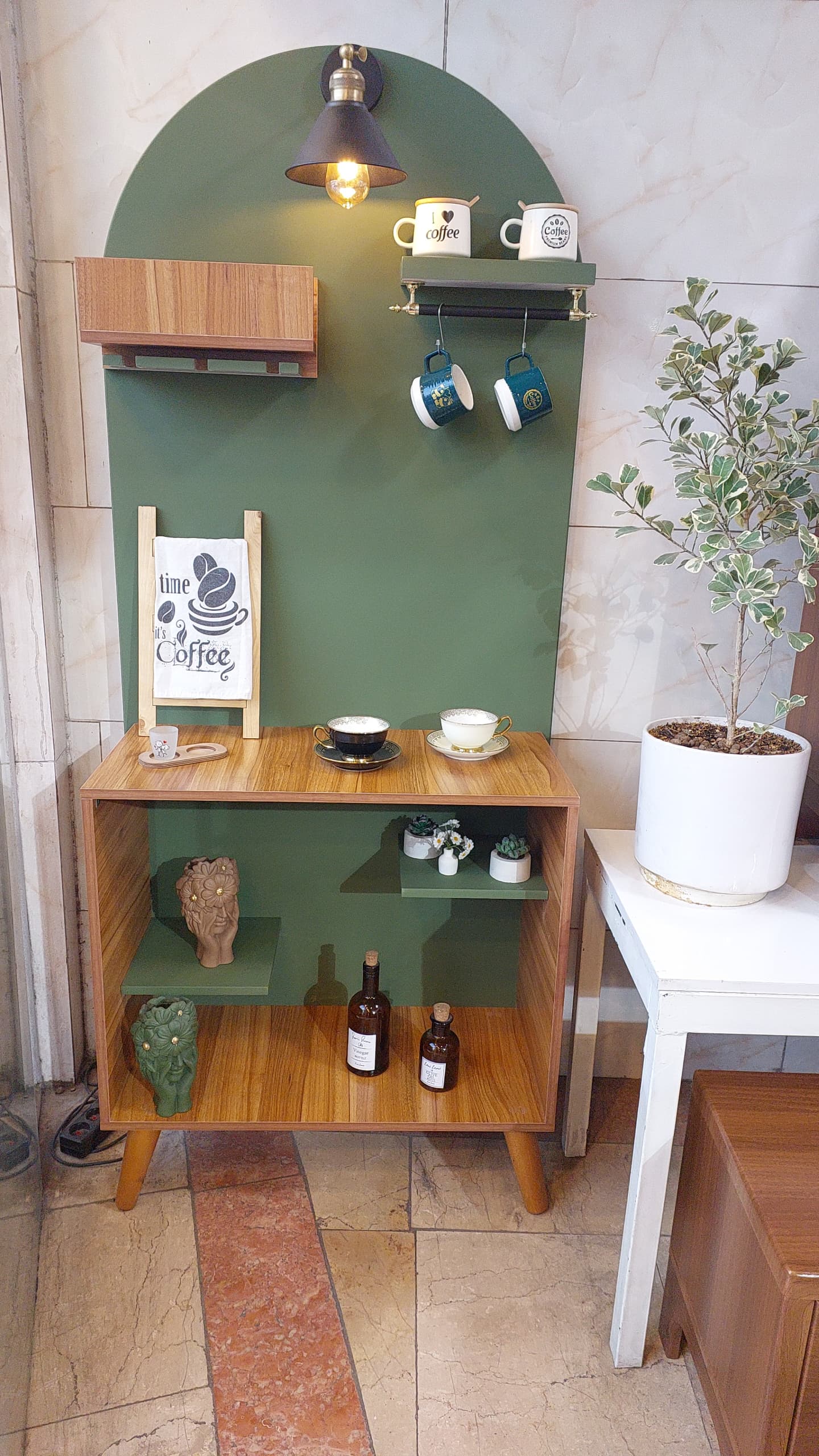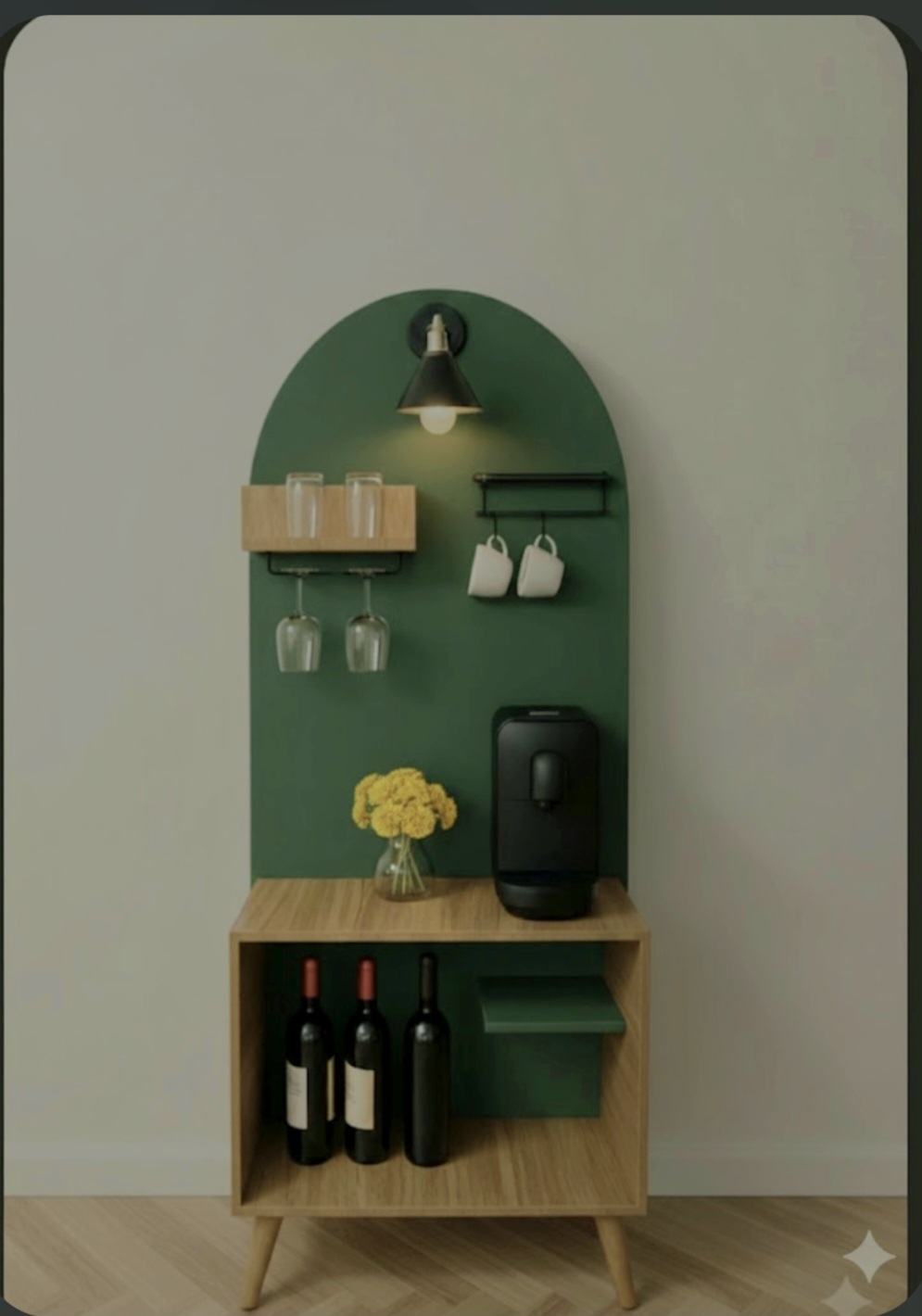 میز بار _ کافی بار مدرن عرض ۸۰ عمق ۳۷ ارتفاع ۱۹۰ جنس ترکیب ام دی اف و ملامینه پایه از چوب دارای اویز فنجان و گیلاس شراب خوری ارسال به سراسر کشور
